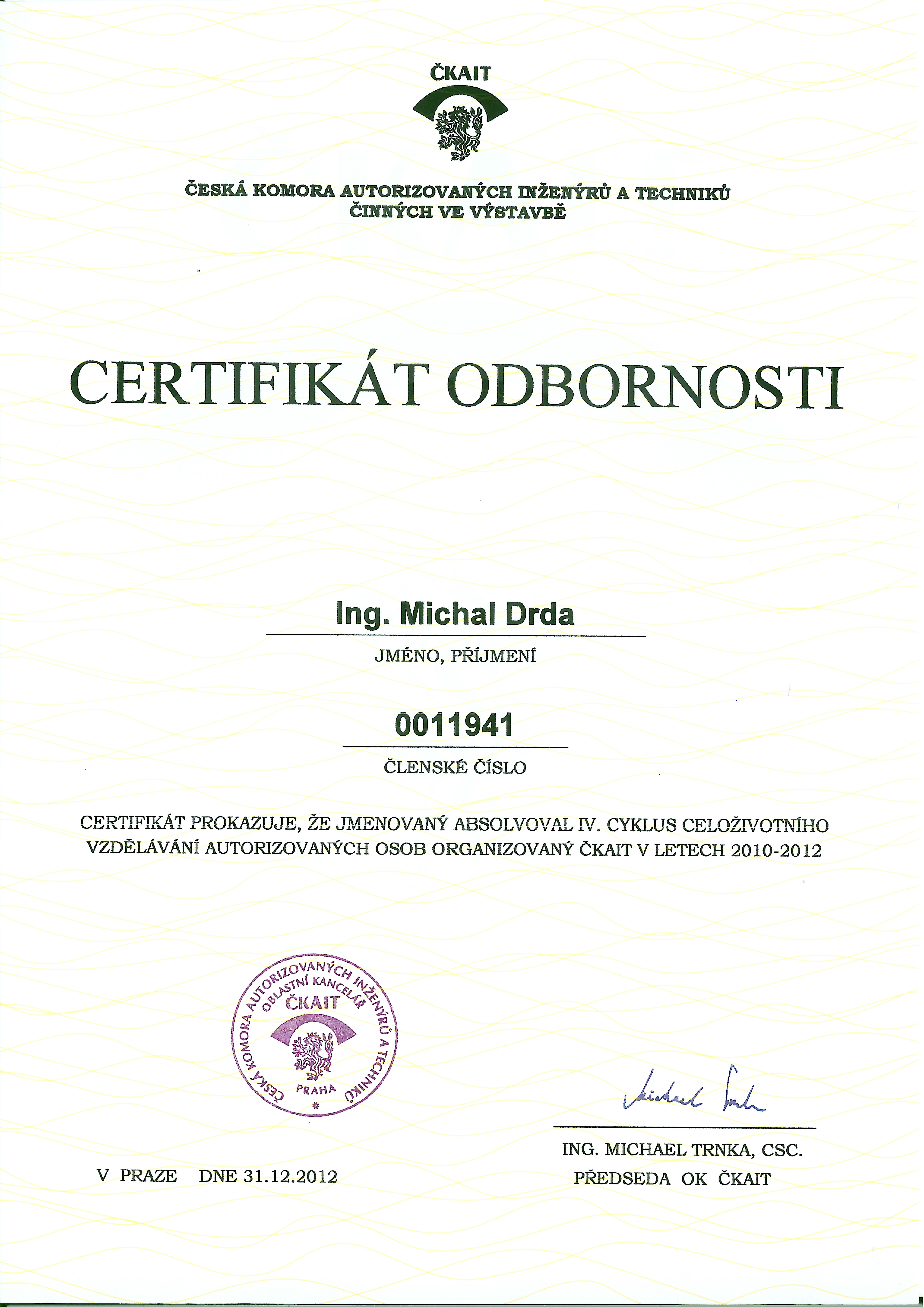 Ing. Michal Drda autorizovaný inženýr pro pozemní stavby |